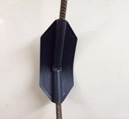 A clip on plastic spacer to provide 50mm of cover for piling cages.